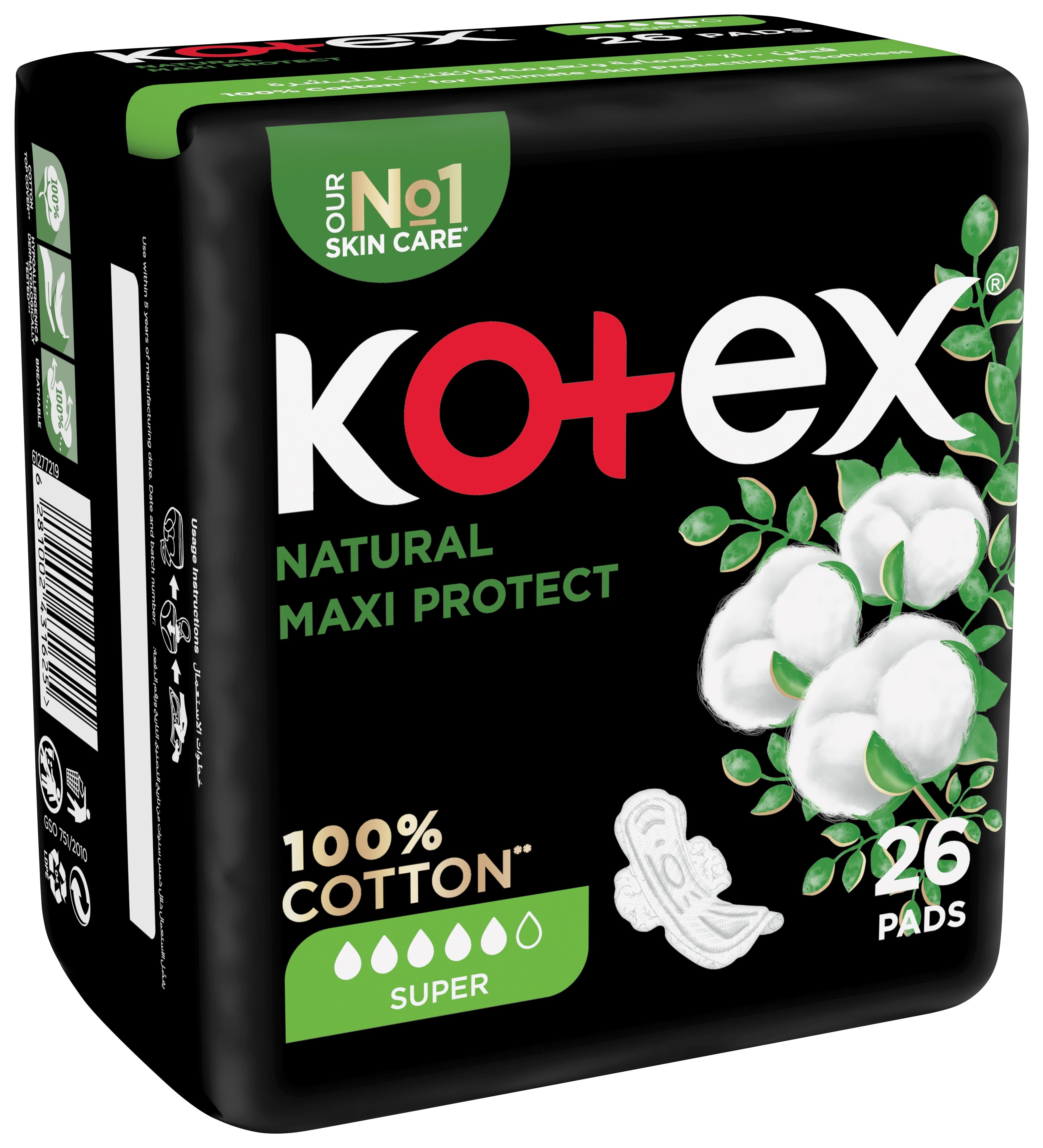 Maximum Absorption: Kotex Natural Maxi Super Cotton Pads provide superior absorption for heavy flow days. Soft Cotton Cover: Made with a soft, breathable cotton cover for maximum comfort and a...